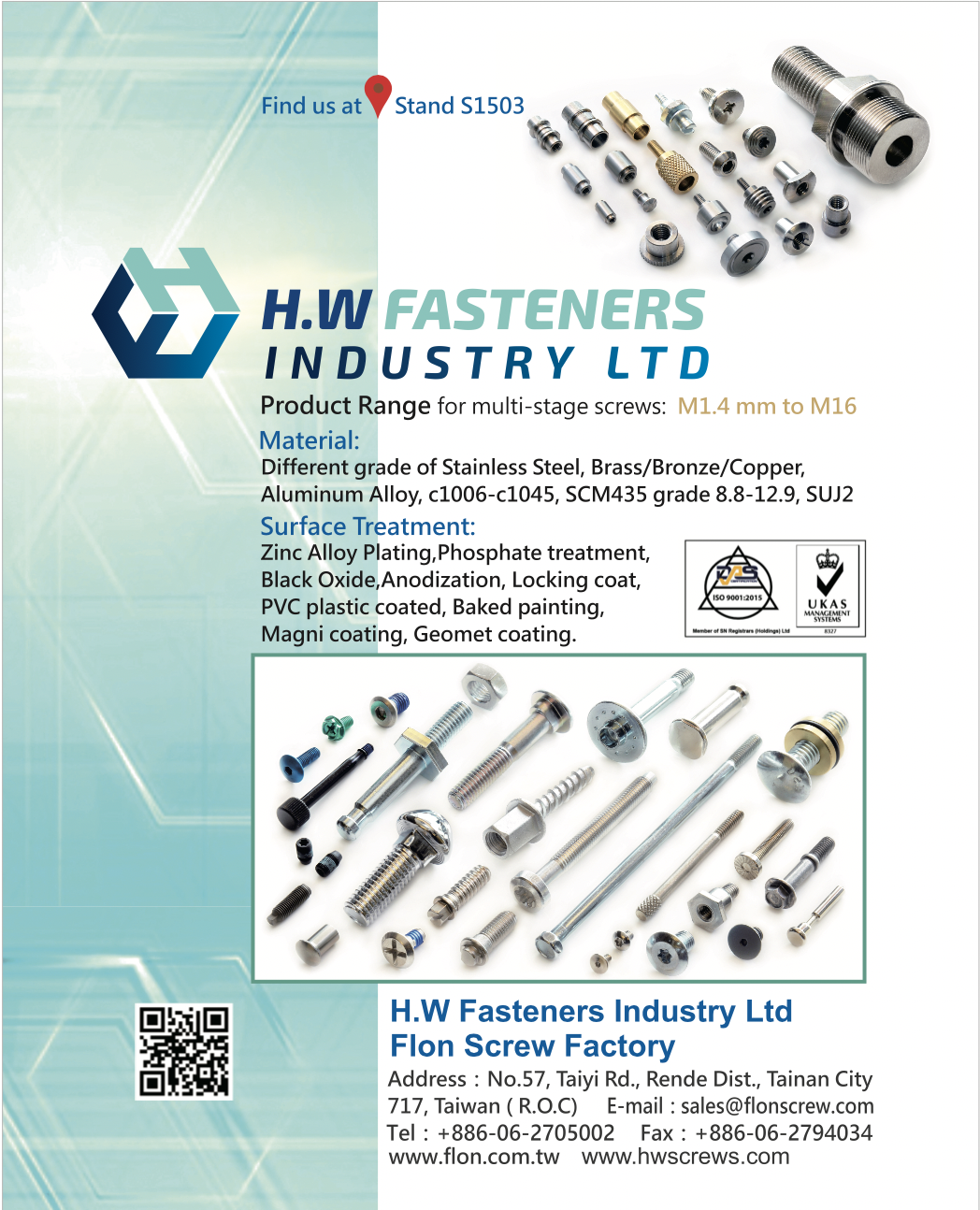 亨旺螺絲工業有限公司的S1503 扣件展區!!歡迎大家參觀蒞臨